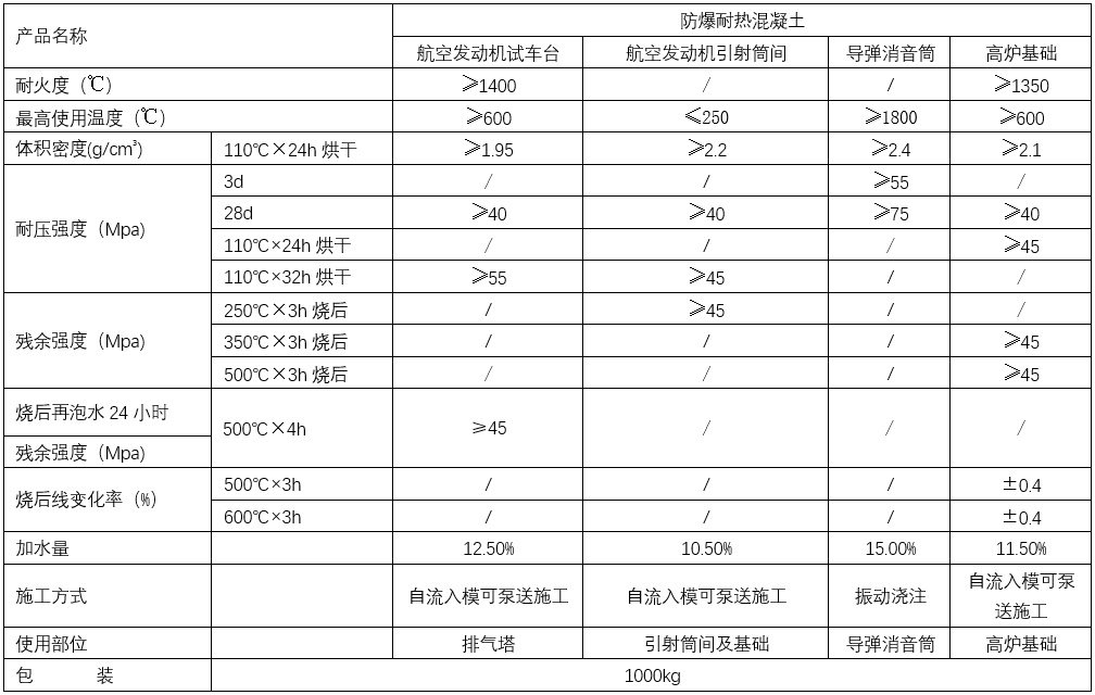 防爆耐熱混凝土是一種能長期承受200℃以上高溫,并在高溫作用下能保持所需物理力學(xué)性能的特種混凝土,現(xiàn)已廣泛應(yīng)用于冶金、化工、石油、軍工、建材等工業(yè)的熱工設(shè)備,及長期高溫作業(yè)的構(gòu)筑物,如:高爐基礎(chǔ),熱處理車間耐熱地面 ,鋼鐵廠渣井,高溫鍋爐及工業(yè)爐基地,導(dǎo)彈消音筒,航空航天發(fā)動(dòng)機(jī)試車臺,煤氣化工火炬基礎(chǔ)等工程。