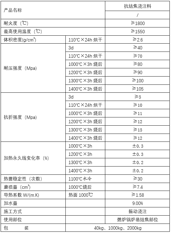 抗結(jié)焦?jié)沧⒘鲜俏夜緦榇笮腿济杭吧镔|(zhì)鍋爐爐膛前后拱開發(fā)的一種抗侵蝕澆注料,因燃煤及生物質(zhì)鍋爐在燃燒過程中產(chǎn)生的飛灰及可熔物結(jié)焦在前后拱上,隨著時間的推移越積越多,會導(dǎo)致鍋爐的熱效率下降,嚴(yán)重的時候影響爐排運行,大量的結(jié)焦物粘結(jié)在鍋爐前后拱上鍋爐起停爐時,結(jié)焦物因溫度變化會局部開裂、脫落造成前后拱澆注料連帶脫落,嚴(yán)重影響鍋爐運行及前后拱使用壽命。此抗結(jié)焦?jié)沧⒘蠌姸雀?,耐侵蝕,導(dǎo)熱系數(shù)高,不易結(jié)焦,成功解決了以上難題。